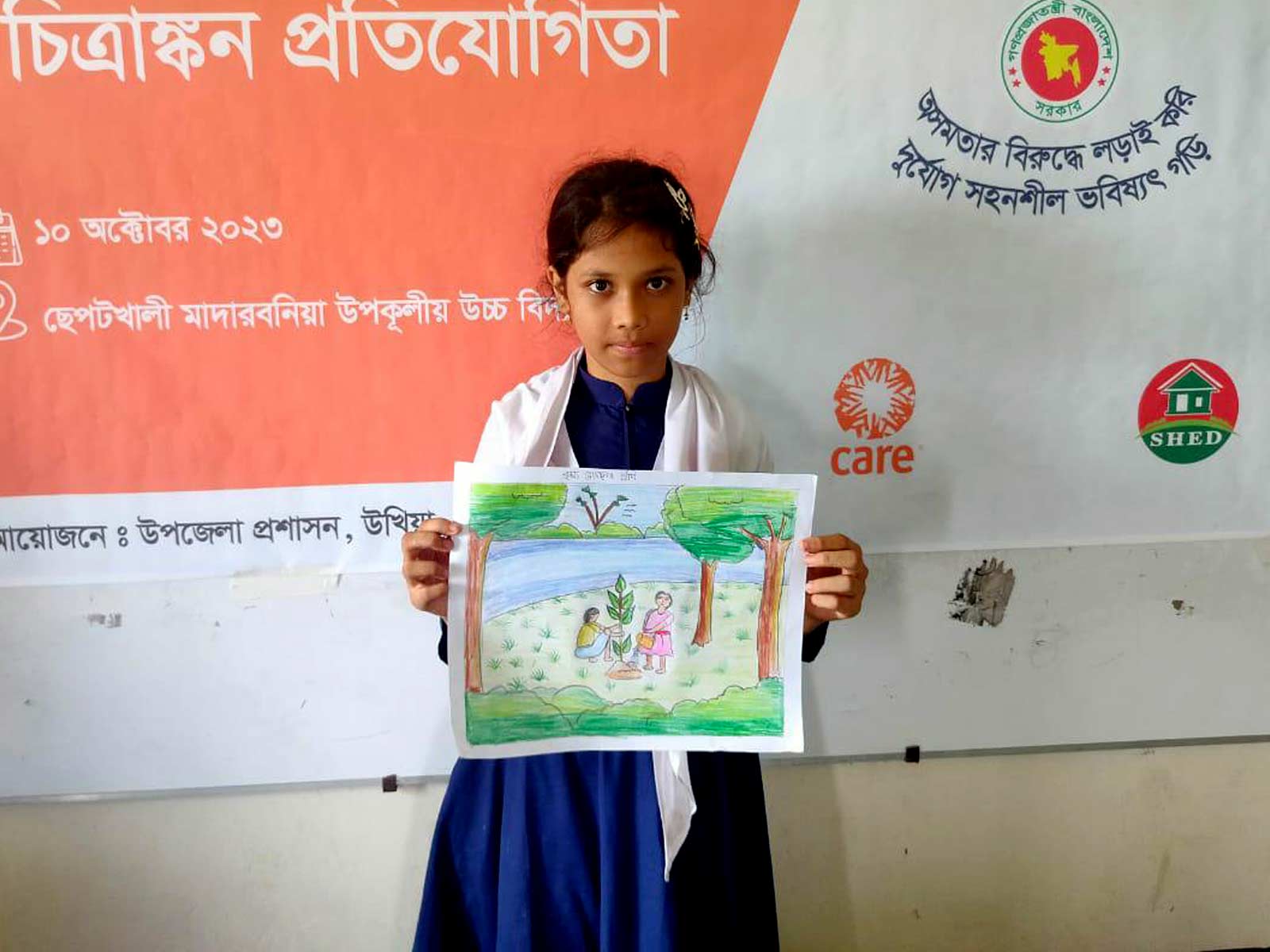 “Jeg har tegnet et træ. Jeg vil have, at de planter flere – for vores overlevelse,” fortæller hun.